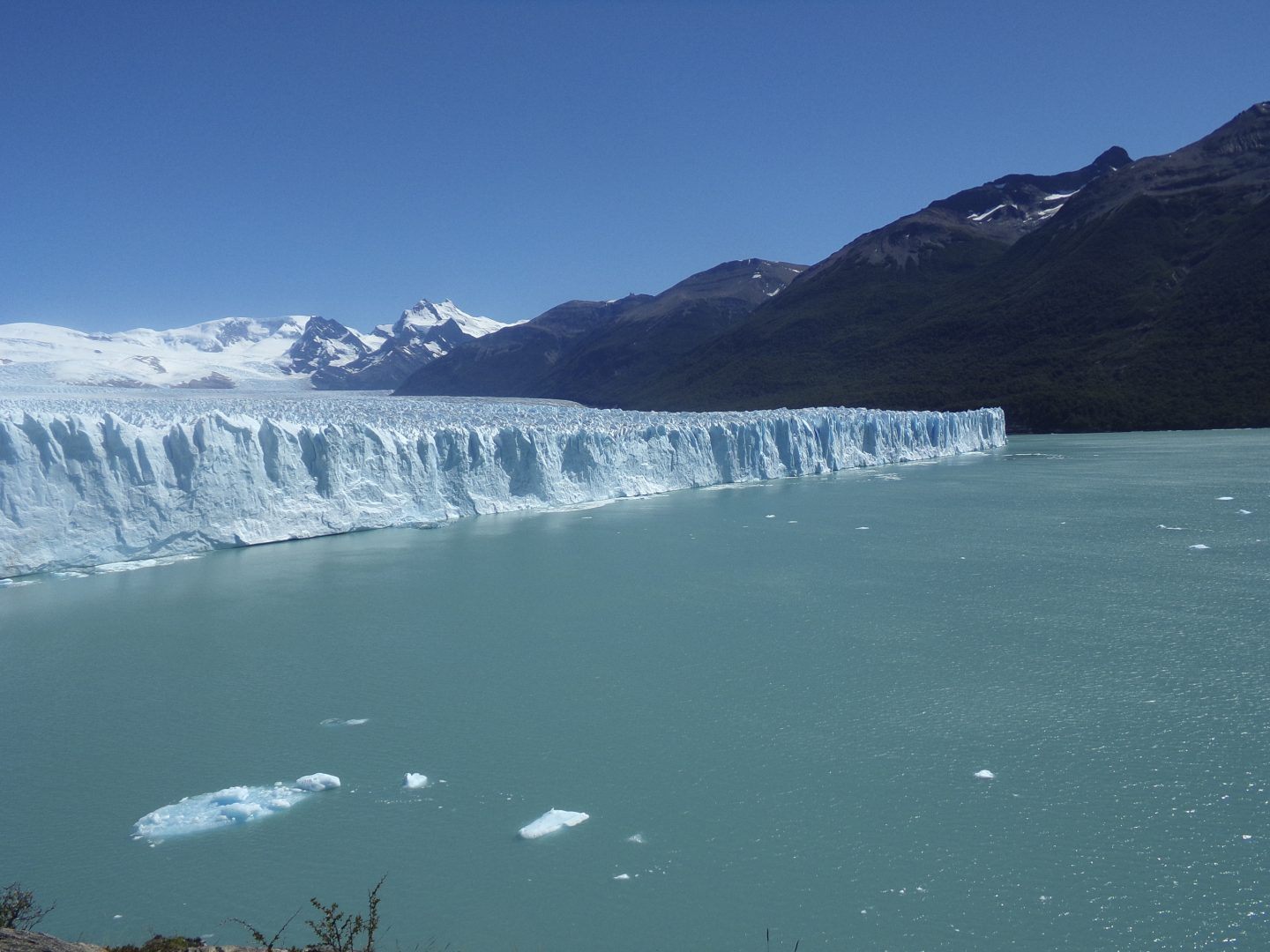 Der Gletscher befindet sich im Süden des Nationalparks „Los Glaciares“, dessen nördlichen Teil um El Chaltén wir ein paar Tage später auch noch bewundert haben. Der Name „Los Glaciares“ spricht für sich, denn im als Unesco-Weltnaturerbe eingestuften Park findet man neben drei riesigen Gletschern noch haufenweise weitere große und kleine Gletscher, die sich alle aus dem riesigen sogenannten „südlichen patagonischem Eisfeld“ speisen. Diese gigantische Eisfläche liegt mitten in den Anden auf chilenischem und argentinischem Gebiet und sorgt für eine kuriose Besonderheit: auf einem 60km langem Abschnitt zwischen zwei Berggipfeln gibt es keine festgelegte Grenzlinie zwischen den beiden Ländern. 1998 wurde beschlossen, stattdessen ein Rechteck auf Karten einzuzeichnen und in diesem Bereich auf eine genaue Landesgrenze zu verzichten.